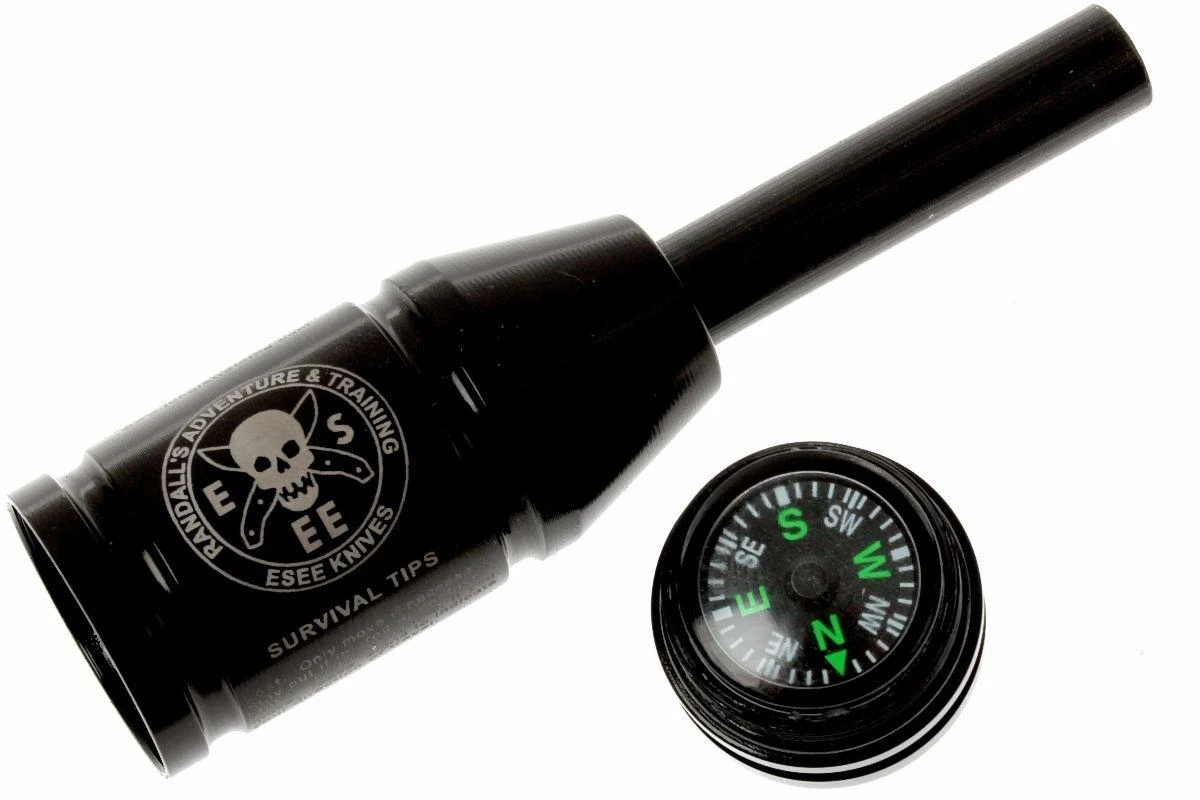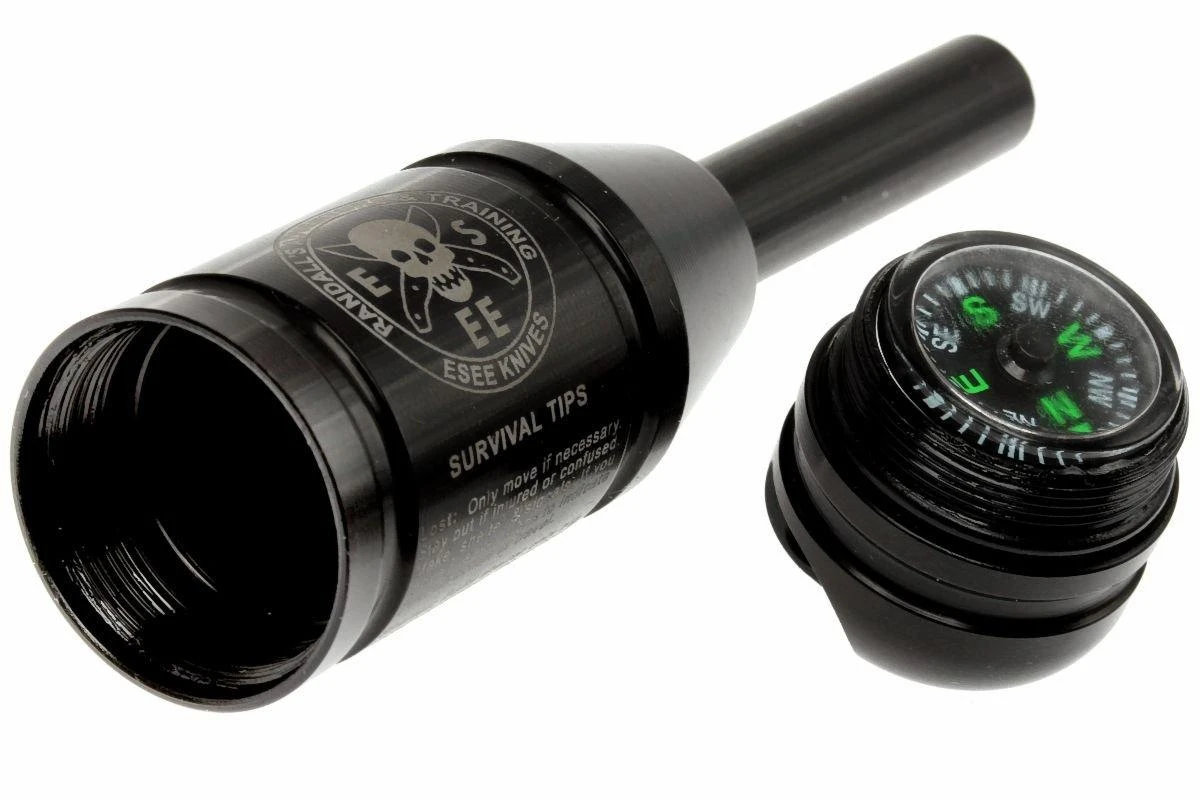 Dieser Firestarter bietet etwas mehr Luxus als viele andere Anzünder. Der Stab ist etwas dicker üblich und wird daher ziemlich lange seinen Dienst tun. Dank des Handgriffs liegt der Fire Starter gut in der Hand und bietet auch Platz für Kleinigkeiten wie z. B. brennbares Material, das hierin trocken und wasserdicht aufbewahrt werden kann. Im Schraubdeckel befindet sich ein kleiner, gut funktionierender Kompass. ESEE lässt keine Fläche ungenutzt: Auf der Außenseite des Fire Kits finden sich eine Anzahl praktischer Tipps. Eine kleine Plastikkarte mit Survivaltipps wird ebenfalls mitgeliefert. Dieses kleine, aber unentbehrliche Tool ist nicht für Survivaltouren oder Bushcraft außerordentlich praktisch, sondern auch ein zuverlässiger Begleiter für Angler, Jäger oder Backpacker. Es lässt sich mit Paracord an Rucksack oder Ausrüstung befestigen oder kann im Handschuhfach des Autos aufbewahrt werden.