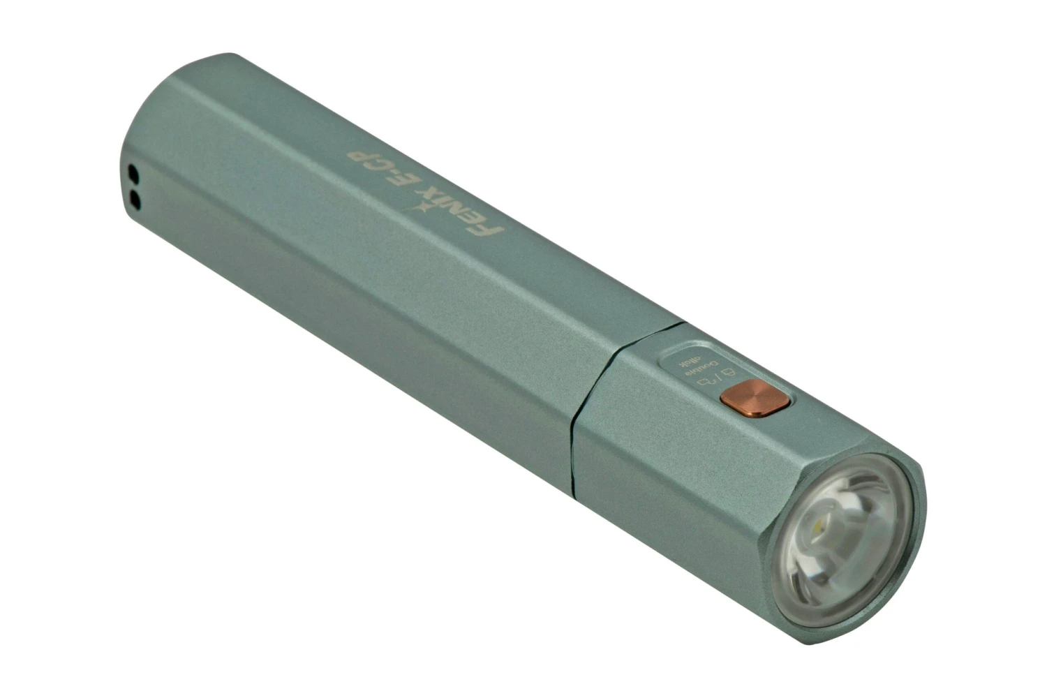 Die Fenix E-CP-Taschenlampe ist eine ideale Taschenlampe für den täglichen Gebrauch und beim Wandern und Camping. Die Lampe hat eine eingebaute Powerbank mit 5000 mAh. Das reicht aus, um die meisten Handys mindestens einmal aufzuladen. Die Lampe hat eine Sperrfunktion, d. h. sie kann sich nicht einfach in der Tasche einschalten. Und die Form macht es einfach, ihn abzustellen oder auf den Rücken zu legen. Die verschiedenen Modi sind ideal für alle Arten von Aktivitäten, von der Wartung des Zählerschranks bis zur Wegfindung beim Camping.