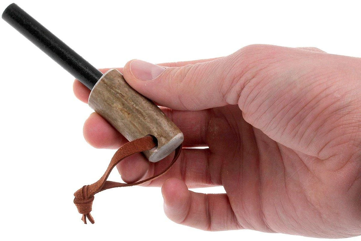Der Karesuando Firestriker ist ein Feuerstahl mit einem speziellen Griff aus Rentiergeweih. Um damit Feuer zu machen, muss man ein Messer benutzen. Mit dem Lederband kann der Firesteel z. B. an das Holster Deines Messers gehängt werden. Der Feuerstahl kann ca. 1000 mal benutzt werden!