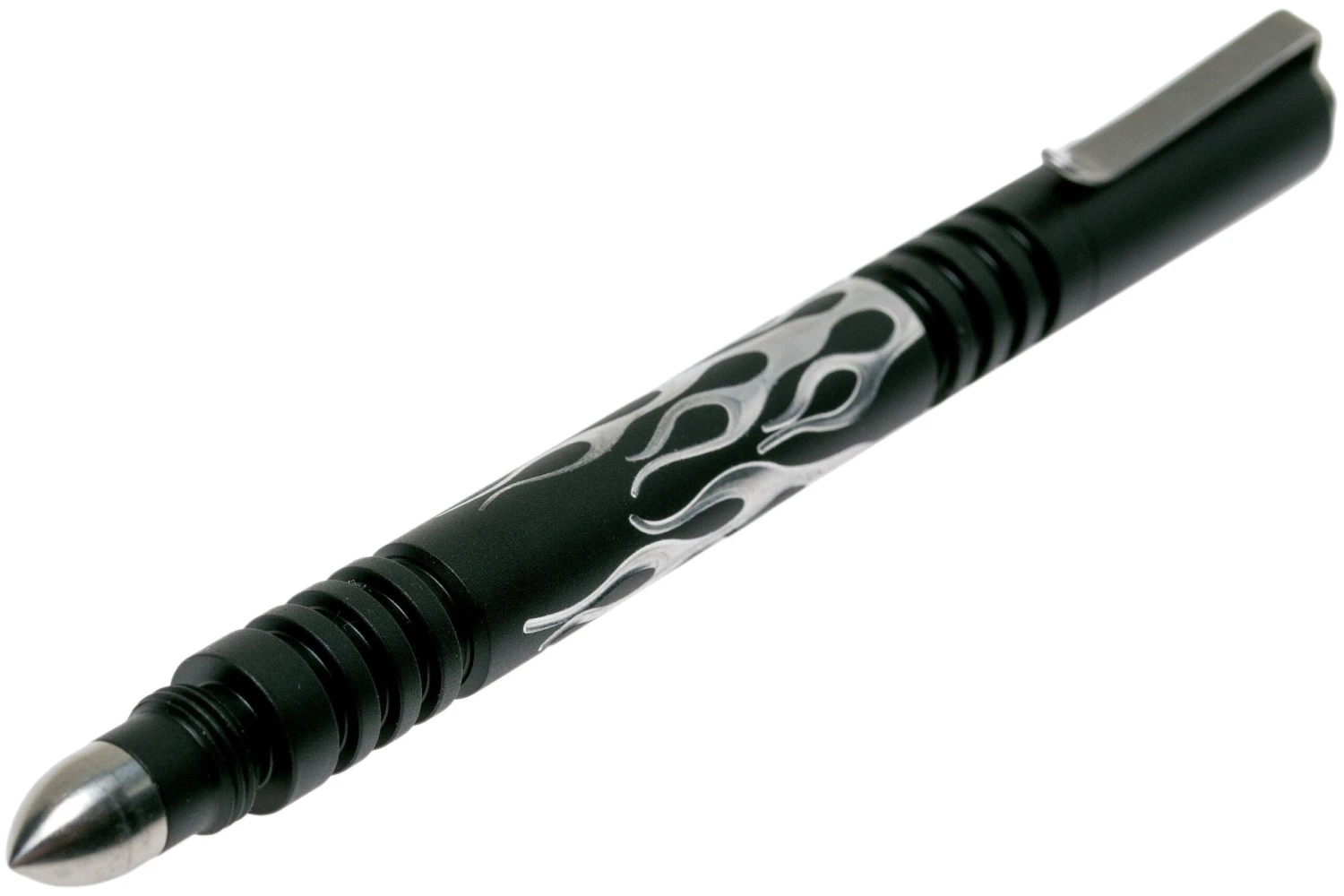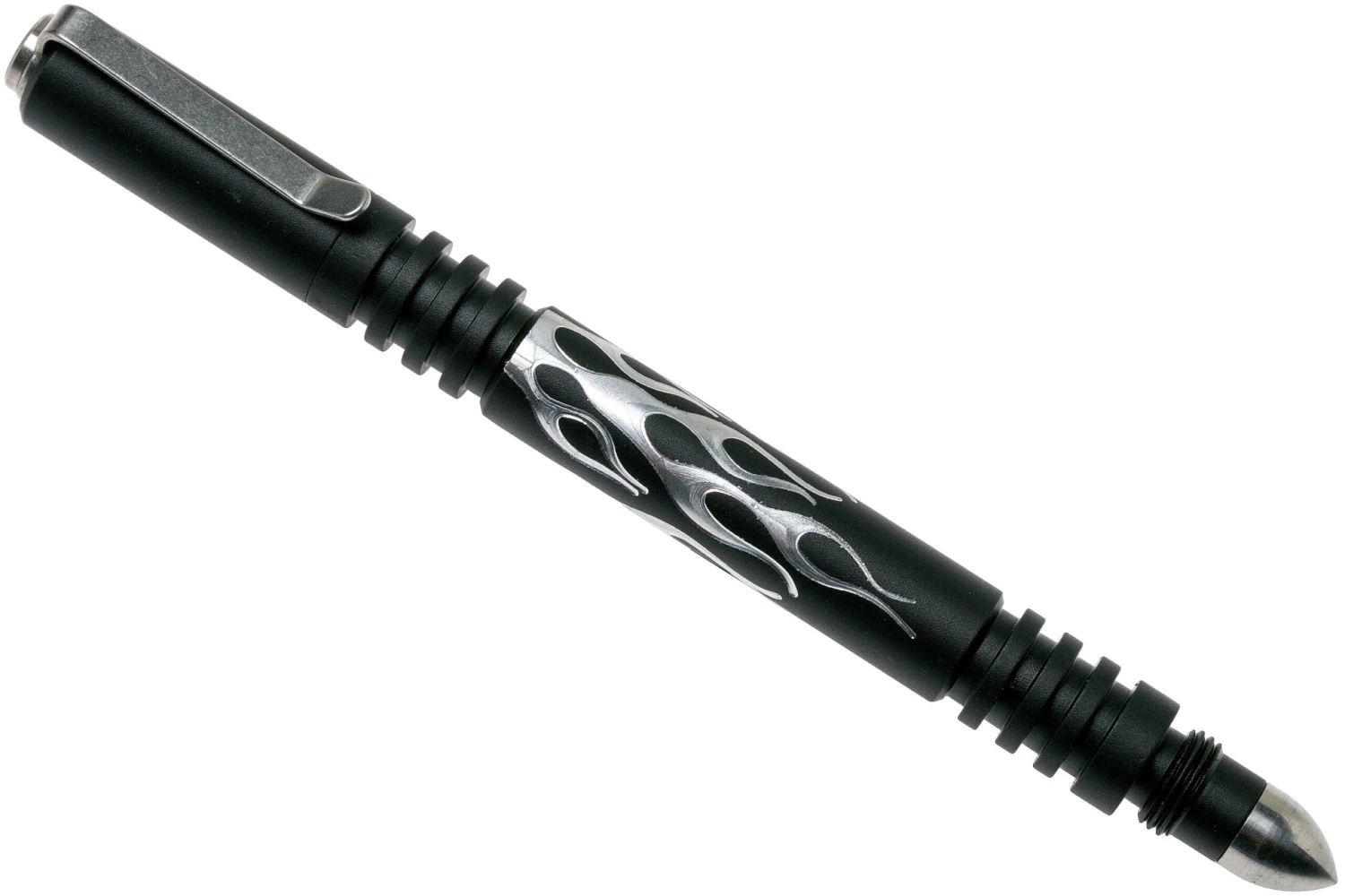 Rick Hinderer Investigator Pen Flames Aluminium, Mattschwarzer Taktischer Stift