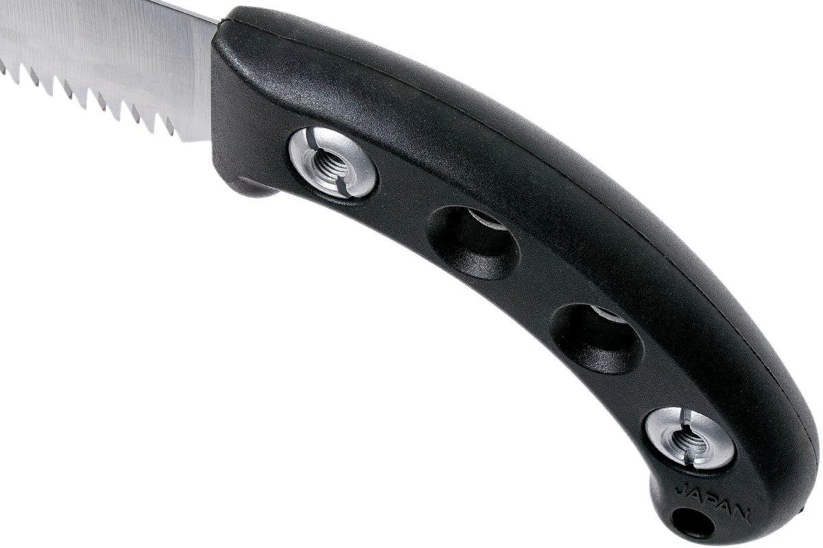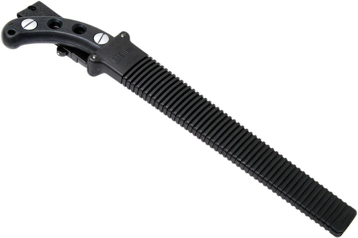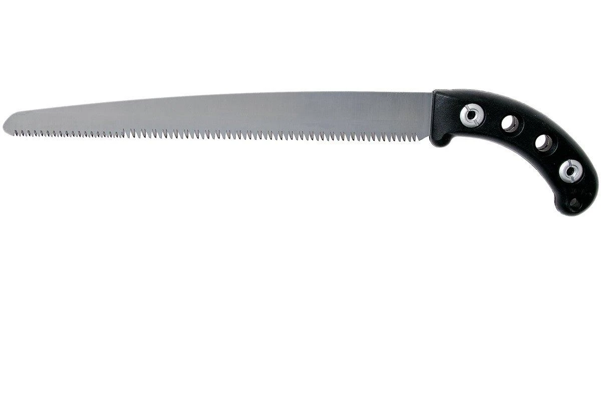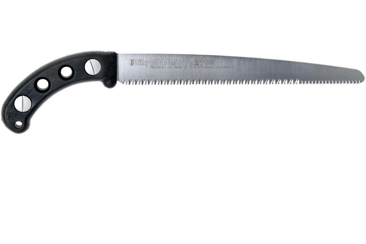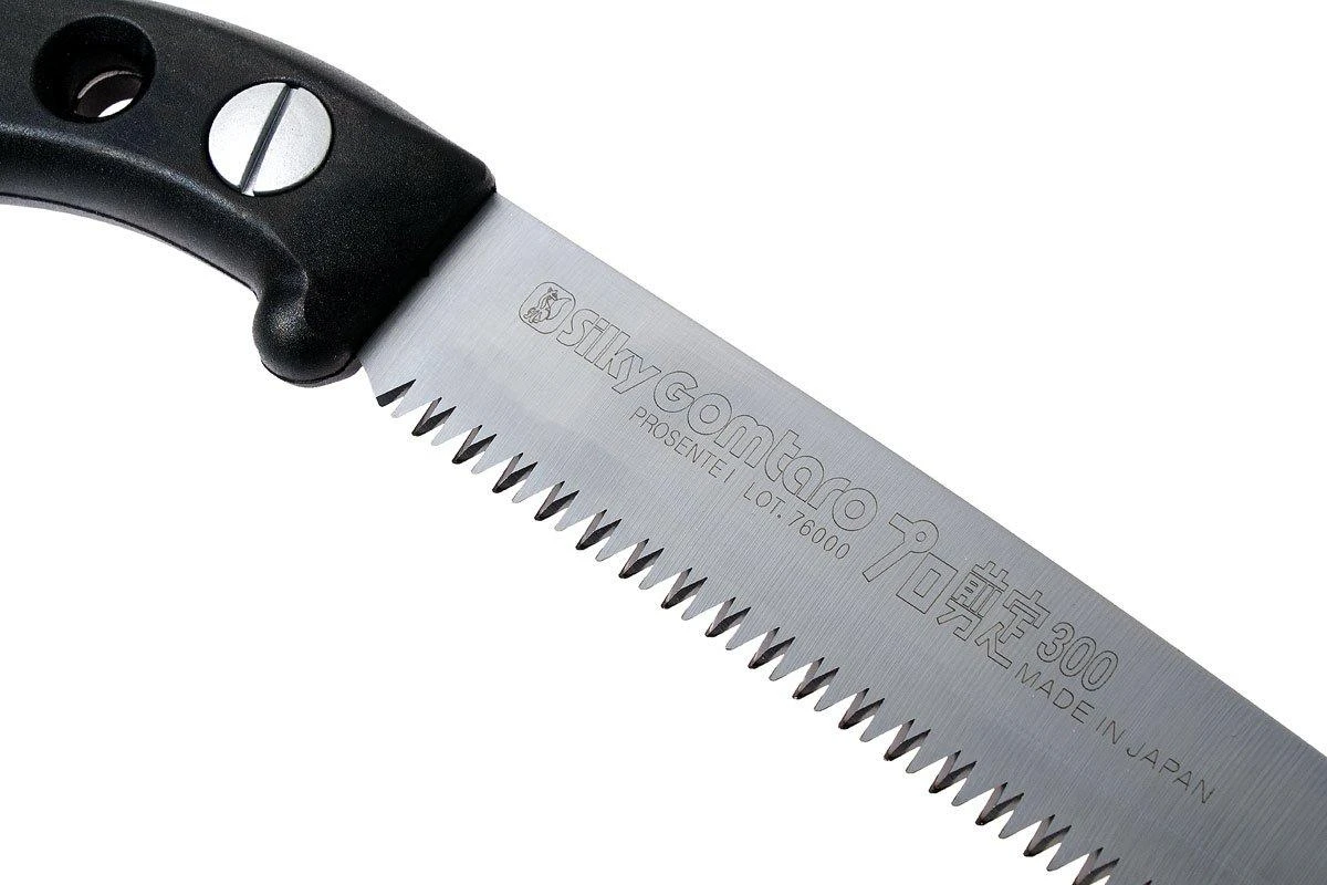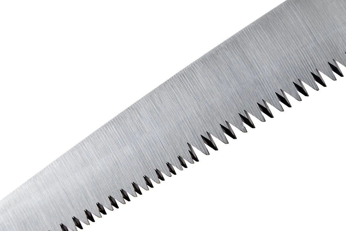 Die Silky Gomtaro Pro Sentei ist eine handliche, feststehende Baumsäge. Damit können Bäume und Sträucher geschnitten werden. Da es eine feststehende Säge ist, musst Du Dir keine Gedanken machen, dass sie zuklappen könnte. Ein solches feststehendes Modell ermöglicht es Silky auch, die Form und die Proportionen zwischen dem Griff und dem Blatt perfekt abzustimmen. Die Gomtaro sägt daher noch besser, so meinen einige.