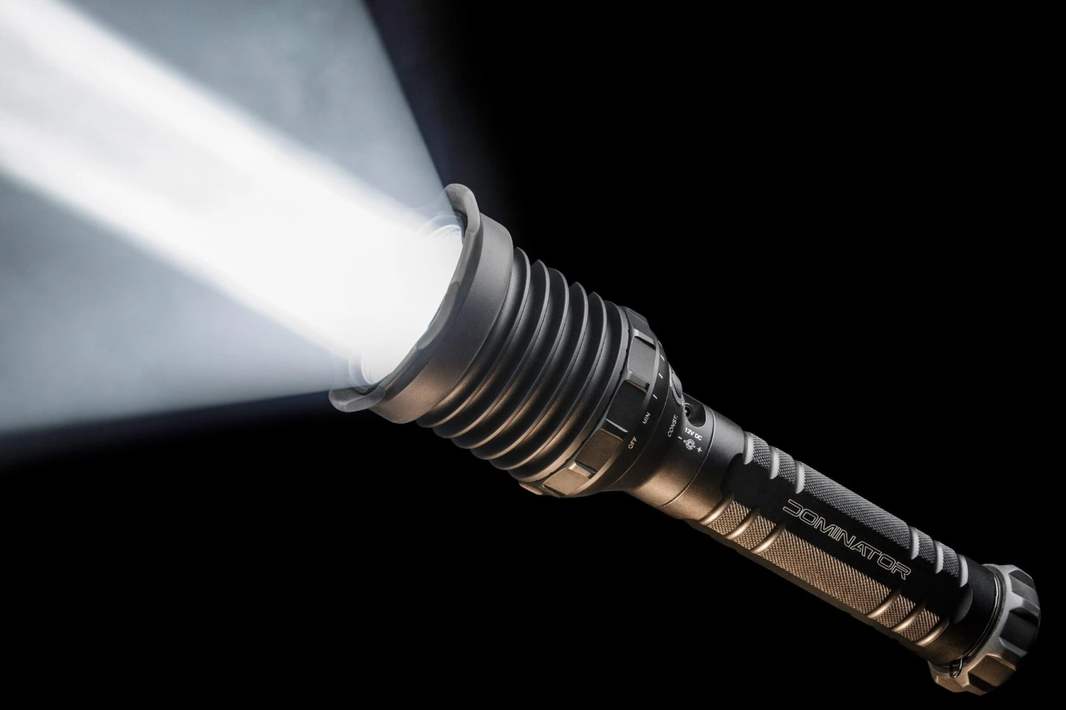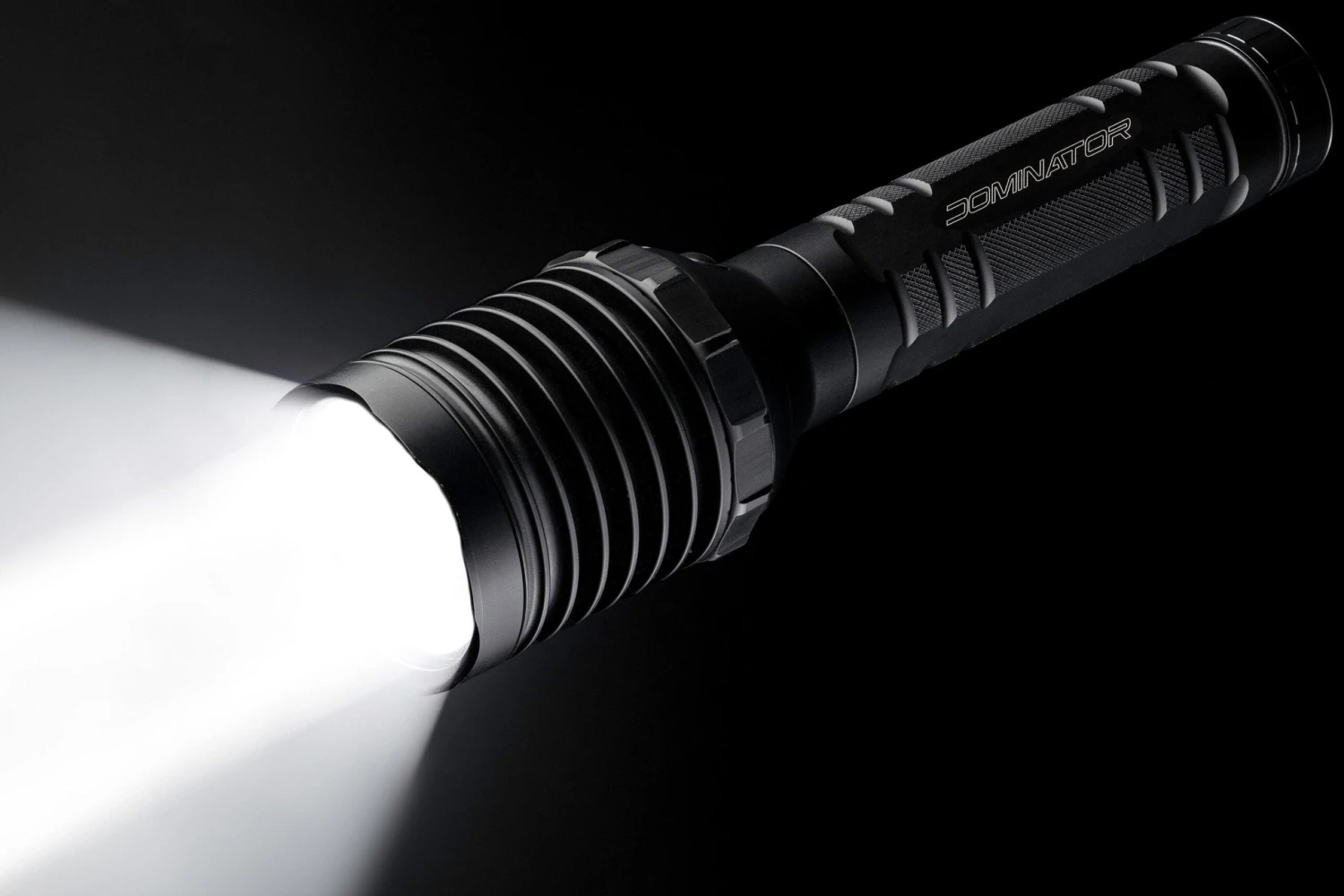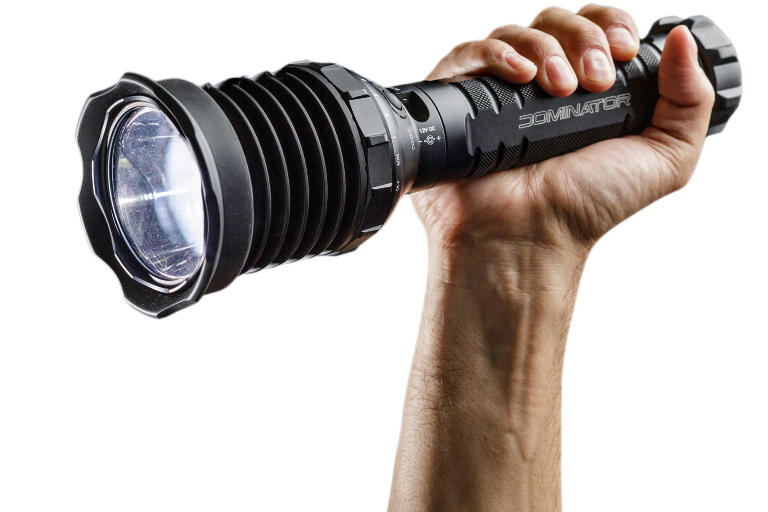Die SureFire UDR Dominator ist die ideale Taschenlampe für das Militär, für Sicherheitskräfte und für maritime Benutzer, die eine helle Taschenlampe/Suchscheinwerfer benötigen. Die Dominator wird entweder über einen Akku (mitgeliefert) oder über 12 CR123A-Batterien (ebenfalls mitgeliefert) betrieben. Die Lampe erzeugt eine maximale Leistung von 2400 Lumen und verfügt über acht Lichtmodi, wovon der niedrigste 14 Lumen erzeugt. Die einzelnen Lichtmodi sind: 2400, 1275, 675, 350, 180, 100, 50, 28 und 14. Außerdem verfügt die Dominator über einen Strobe-Modus.