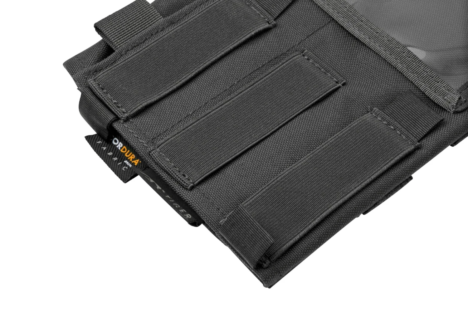 Der Tasmanian Tiger Sun Shade Cover verwandelt die Sonnenblende Deines Autos in eine EDC-Pouch. Auf der Seite dieses Sun Shade Covers gibt es ein MOLLE-Netz, hinter dem Du z.B. eine Taschenlampe oder einen taktischen Stift stecken kannst. Das transparente Fach ist perfekt für Karten, Deinen Ausweis, Parkscheine usw. Die andere Seite hat ein MOLLE-System mit Klettverschluss. Die Pouch ist aus starkem 700 Denier Cordura® gefertigt. Der Sun Shade Cover ist für fast alle Sonnenblenden mit einem Umfang von ca. 29 bis 37 cm geeignet.